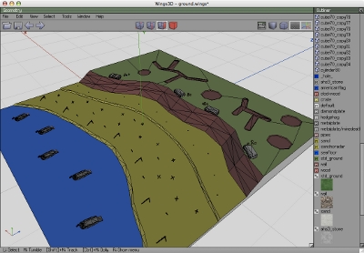 I've always liked seeing the software or workflow people use to make maps, so here's a screenshot of the map before I exported from Wings3d. The solid colors are UVMapped faces that I gave a material so it's easier to hand edit once exported. I use materials as a sort of name or place holder for faces. For example, I often make a "death" material so I know which faces need physics applied to them in a text editor.